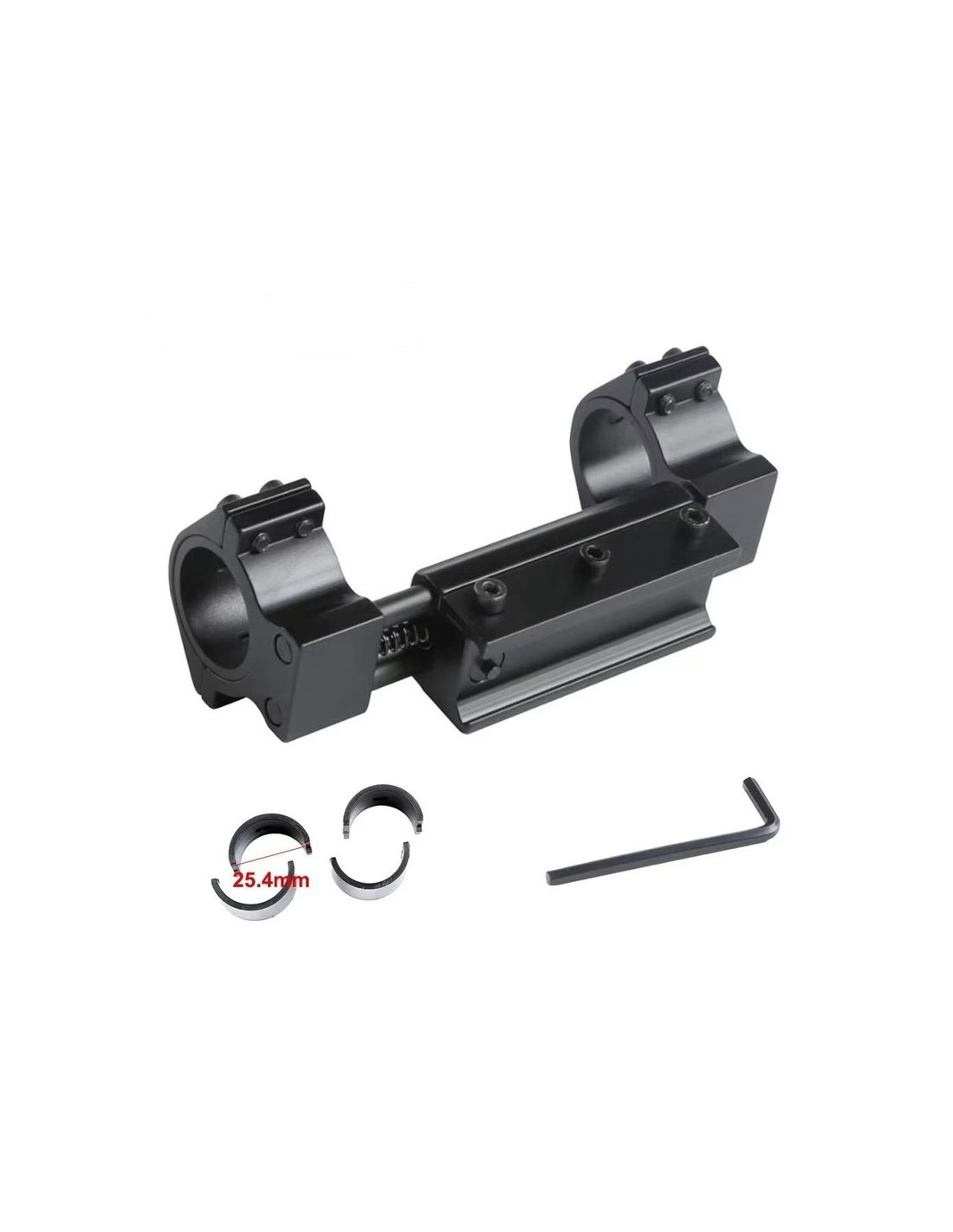 Jednodílná duralová montáž s integrovaným zákluzemje určena pro puškohledy s objektivem, většinou do rozměru 60 mm. Uchycení je pomocí šroubů na pravé části montáže. Tato montáže je vhodná pro uchycení puškohledu nebo jakéhokoliv jiného zařízení s tubusem 30mm i 25,4mm (pro menší puškohledy jsou součástí balení vymezující články).